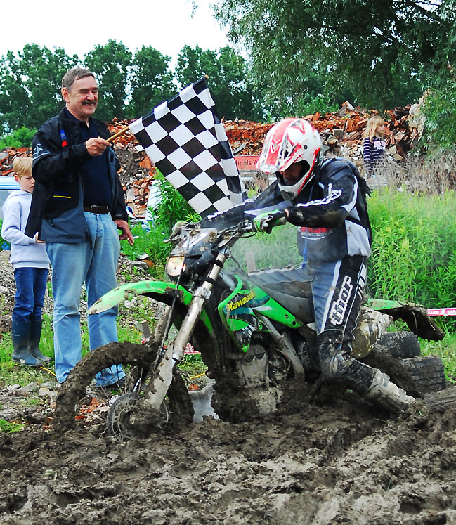 Um die Mittagszeit hatten dann die 15 Quadfahrer den fast fünf Kilometer langen Kurs – dieses Jahr übrigens ganz ohne Asphaltanteil – für sich allein. Das Highlight des Tages bildeten dann die fortgeschrittenen Fahrer der Klassen 1, 2, 3 und 9 (Motocross-Motorräder ohne Zulassung), die ab 14:00 Uhr ihre Runden drehten.