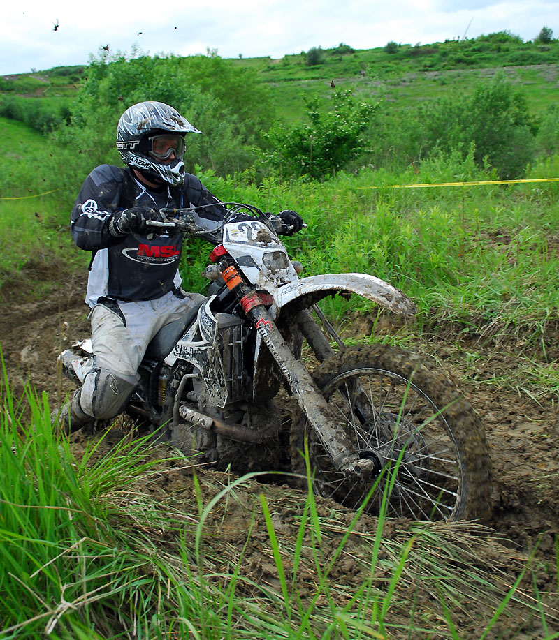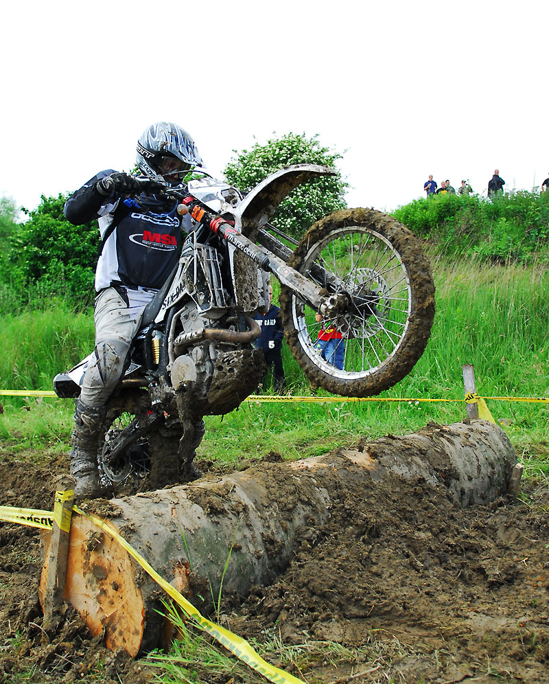Als ob die schmierigen Streckenverhältnisse noch nicht genug waren, hatte der MSC Senne auch noch einige künstliche Hindernisse aufgefahren. Darunter einige Baumstämme sowie diverse Reifen, an denen sich viele Fahrer die Zähne ausgebissen haben.