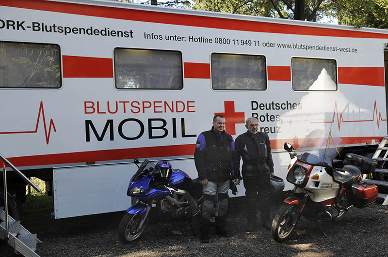 Von Anfang an hatte auch der Landesverband die gemeinsame Aktion von Motorsportclub und Deutschen Roten Kreuz unterstützt. Der alte Parkplatz an der Waldbühne, umgeben vom dichten Wald ist romantisch und stimmungsvoll – und für die Blutspender kostenlos, während sonst die Parkplätze auf dem Hermannsdenkmal Gebühren kosten.