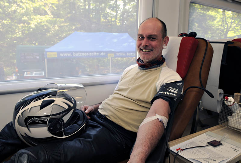 Viele Motorradfahrer aus der Region, aber auch von Osnabrück bis Gütersloh, hatten die Kurven zum Denkmal hoch in Angriff genommen. Zahlreiche Spender nutzten einen der schönsten Herbsttage zu ihrem Weg nach Detmold. Nicht nur Stephan Kottmann, der Referent für Öffentlichkeitsarbeit vom Deutschen Roten Kreuz war sehr zufrieden: “Durch solche Termine am Sonntag kommt der kontinuierliche Prozess der Aufarbeitung des Blutes nicht ins Stocken.” Zusätzliche Termine wie dieser am Hermannsdenkmal helfen nicht nur aktuelle Engpässe zu überbrücken, sondern motivieren auch neue Interessenten, als Erstspender aktiv zu werden. So waren auch diesmal mit über zehn Personen, ein besonders hoher Anteil an Spendern dabei, die sich zum ersten Mal pieksen ließen.