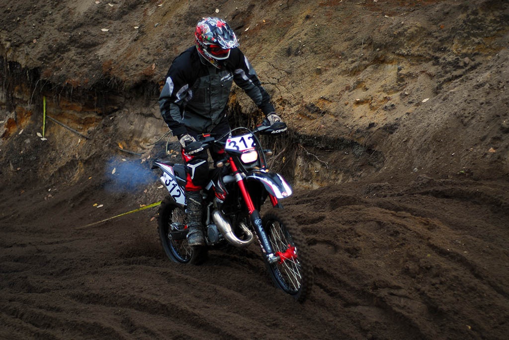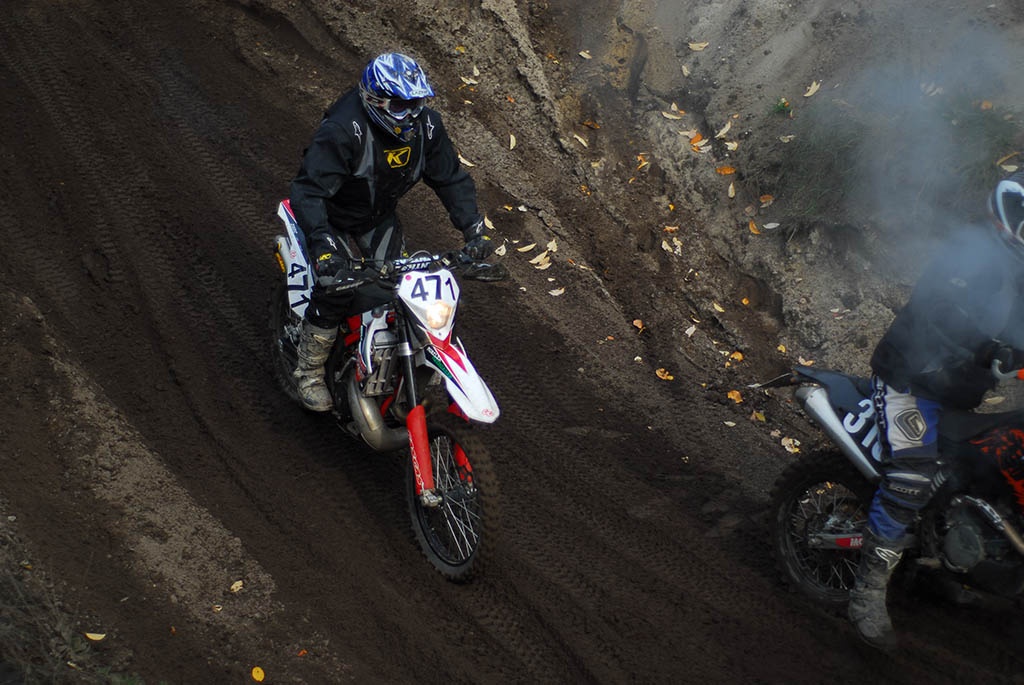 Die Veranstalter rund um Sven Kiedrowski hatten auf dem Gelände, welches eigentlich nur für Geländewagen und Quads bestimmt ist, eine anspruchsvolle Enduro-Runde aufgebaut. Auf- und Abfahrten wurden genauso geboten wie einige künstliche Hindernisse und Tiefsandpassagen. Besonders letztere wurden für einige weniger versierte Teilnehmer zum Verhängnis, sie vergruben ihre Motorräder regelrecht im Sand.