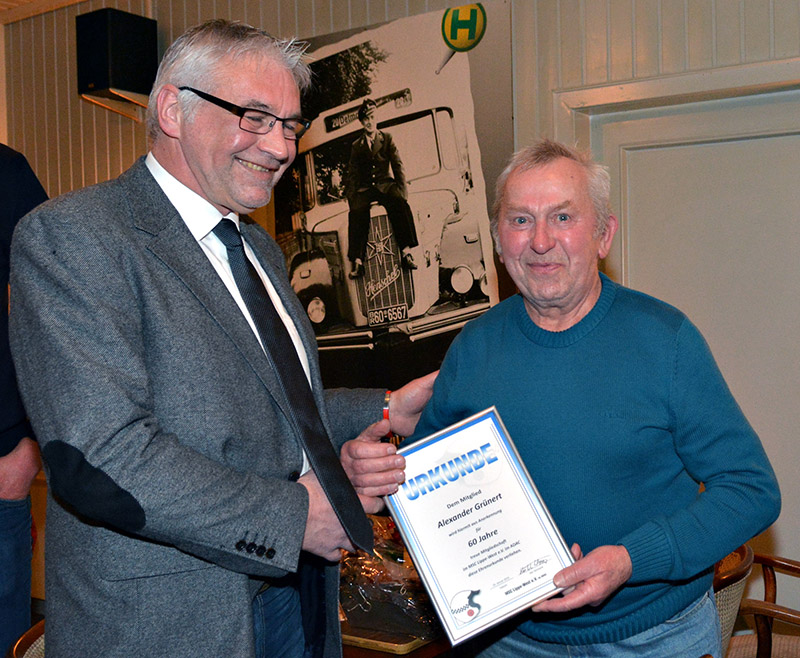 Auf der anderen Seite der Altersskala stehen die langjährigen Mitglieder wie Axel Koch (25 Jahre), Gerd Hanke (40 Jahre), Karl-Heinz Büker (50 Jahre) und Alexander Grünert (60 Jahre), die dem Verein teilweise noch höchst aktiv verbunden sind und vor Ort ausgezeichnet wurden.