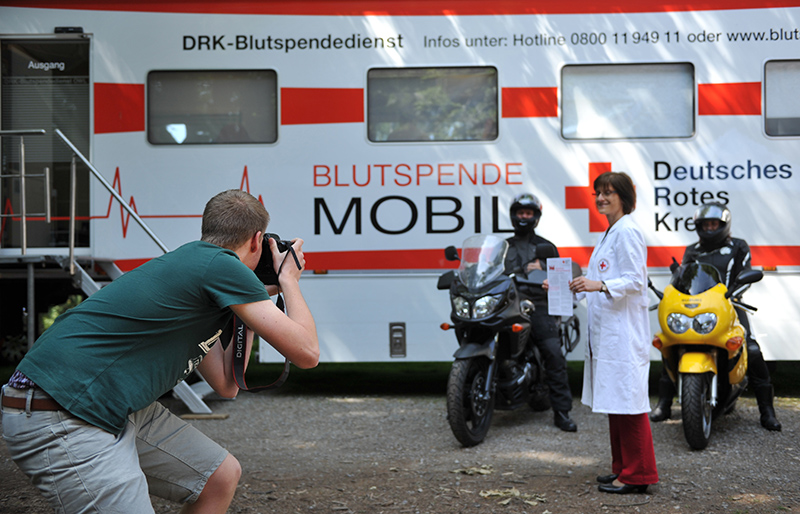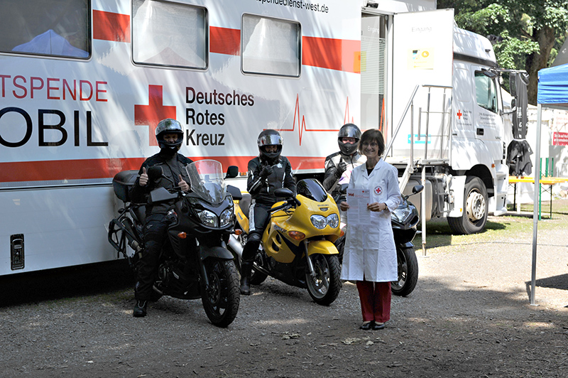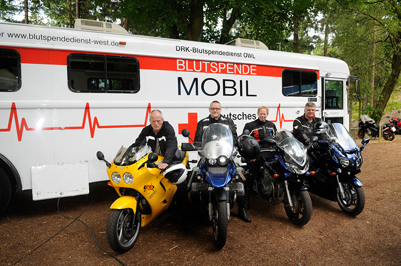 Das Hermannsdenkmal, weithin bekannt, war wieder der Treffpunkt: Auf dem alten Parkplatz an der Waldbühne, den der Landesverband wieder dankenswerterweise zur Verfügung gestellt hatte, parkte der moderne Entnahmebus des Deutschen Roten Kreuzes. Gekommen waren (nicht nur) zahlreiche Motorradfahrer, und die nutzten oft beide Optionen, obwohl aufgrund der starken (Alters-)Einschränkungen sich nicht Jedermann registrieren lassen konnte.