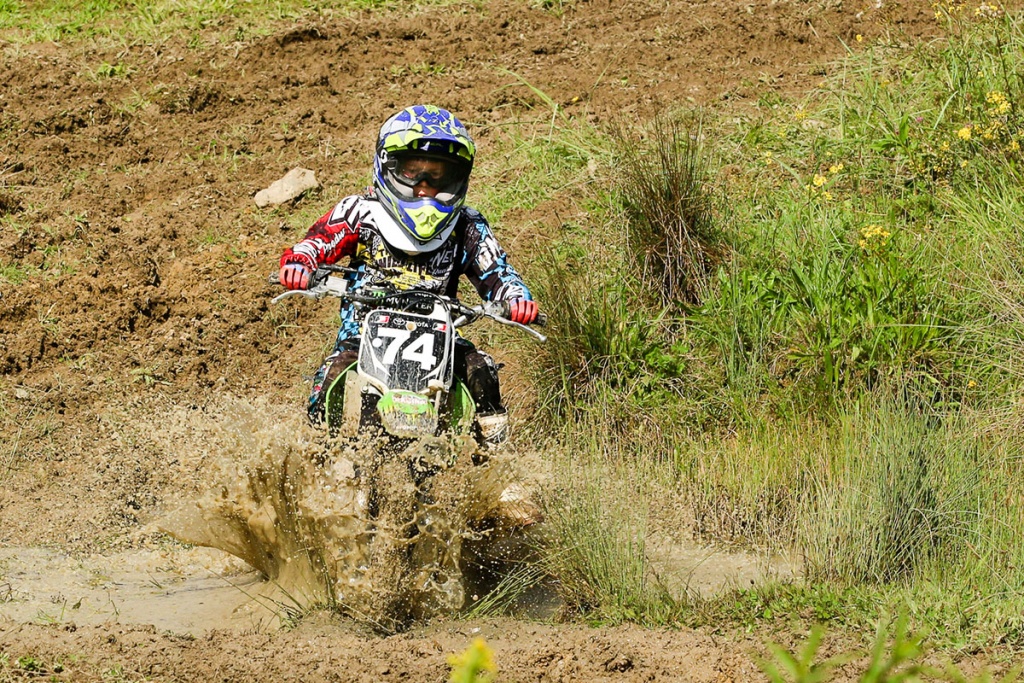 Einen eigenen Lauf wurde dieses Mal für den Enduro-Nachwuchs in den Schülerklassen organisiert. Auf einer eingekürzten – aber genau so schlammigen – Strecke konnten die Junioren so richtig im Dreck wühlen. Und das war mit den kleinen Maschinen und Rädern gar nicht so leicht! Max Bölte fuhr mit seiner kleinen Kawasaki ganze 4 Runden mehr als der Zweitplatziertze in seiner Klasse!
