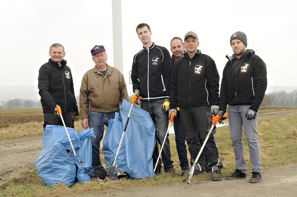 Bei der Aktion der Gemeinde Leopoldshöhe “Saubere Landschaft” beteiligte sich auch der MSC Lippe-West: Trotz der gleichzeitig stattfindenden ADAC Jahreshauptversammlung waren sieben Mitglieder aktiv vor Ort (Einer steht hinter der Kamera und macht das Foto). Entlang des Lehagenweges und der Windräder wurde die Umgebung von weggeworfenem Müll gereinigt. Zahlreiche kleine Fläschchen vom “Schluck” bis hin zu Autoteilen fanden ihren Weg in den ordentlichen Müll, der von der Gemeinde entsorgt wurde.