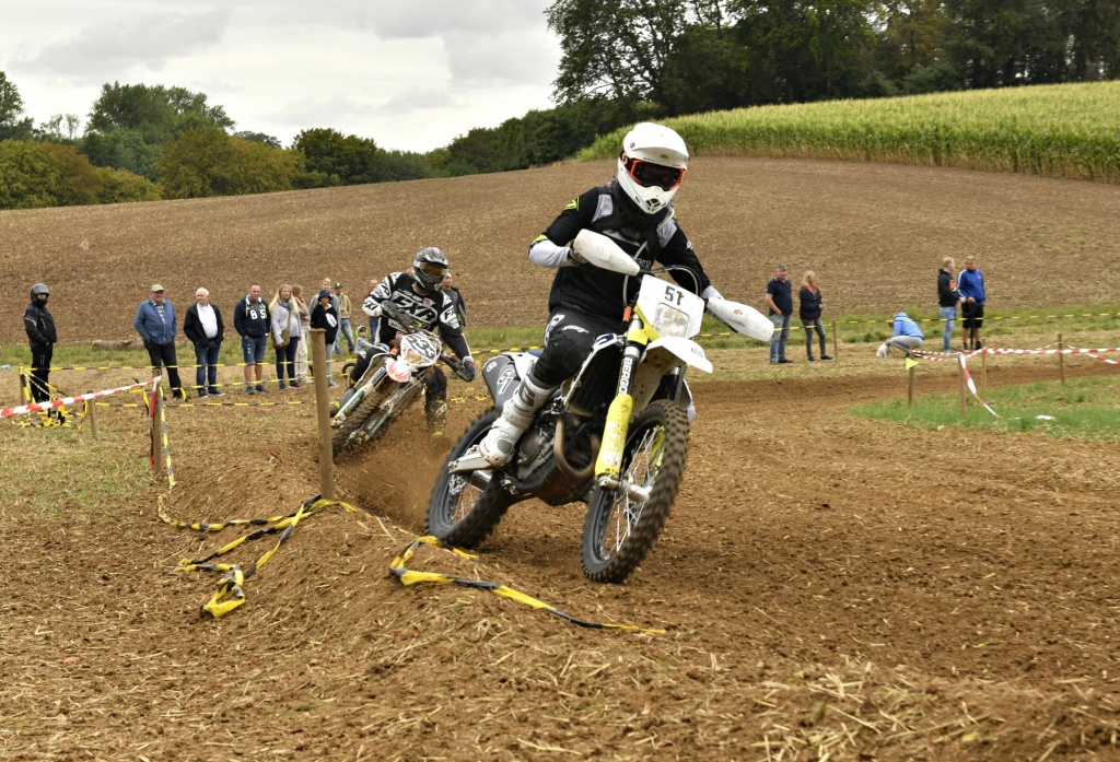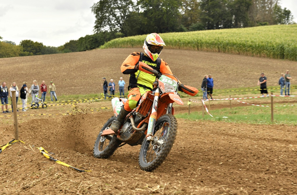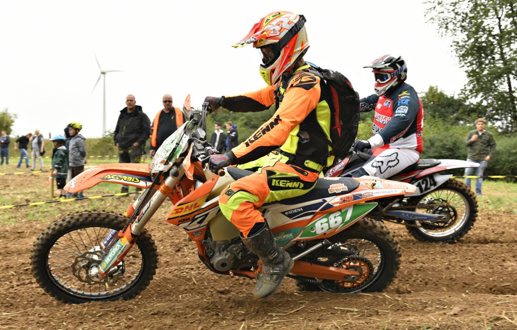 Am Nachmittag, beim zweiten Start holte sich David Lux aus Dülmen über die zwei Stunden Renndistanz einen klaren Start-Ziel-Sieg. Zwischenzeitlich war ihm Junior Daniel Müller aus Tucheim näher gekommen, doch Lux entschied das Rennen und die Gesamtwertung klar für sich: „Ich habe gerade erst das neue Motorrad bekommen und freue mich um so mehr, gleich damit gewonnen zu haben,“ freute sich Lux anschließend. Lux fährt sonst auch internationale Wettbewerbe vom Extrem-Enduro in Rumänien bis zu den Mannschafts-Weltmeisterschaften der Endurofahrer in Chile im vergangenem Jahr.