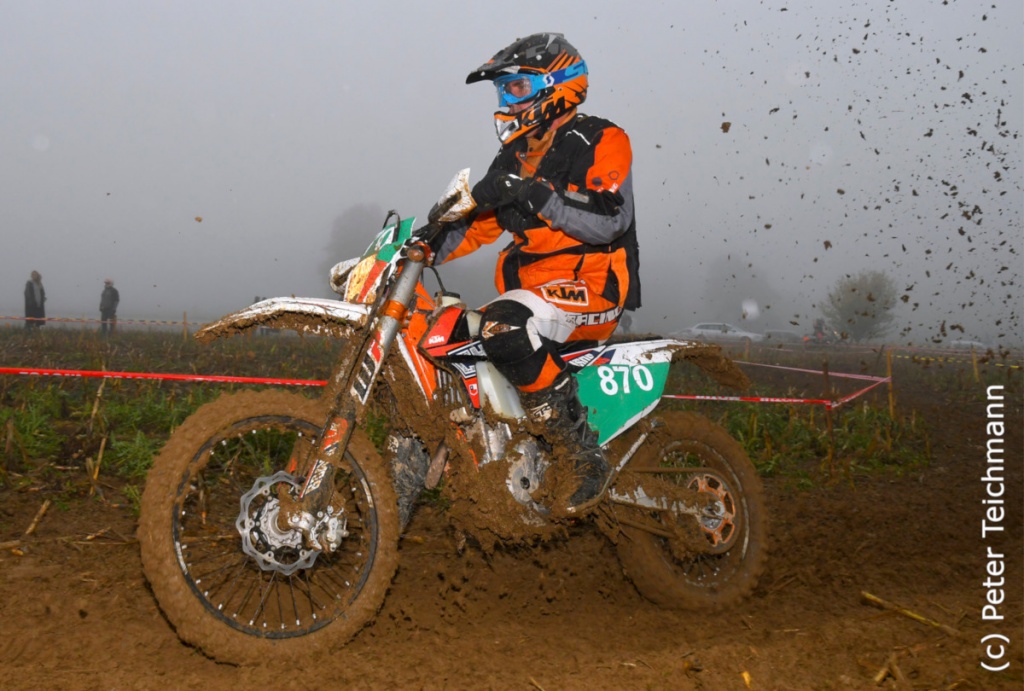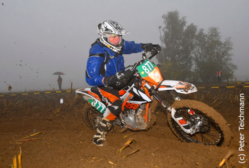 Bruno gab nach zwei Runden vorzeitig auf: „Bei dem Schlamm und Regen bin ich ohne Brille gefahren und habe immer wieder Dreck in die Augen bekommen. Ich konnte nicht mehr richtig Sehen, das wurde mir zu gefährlich.“